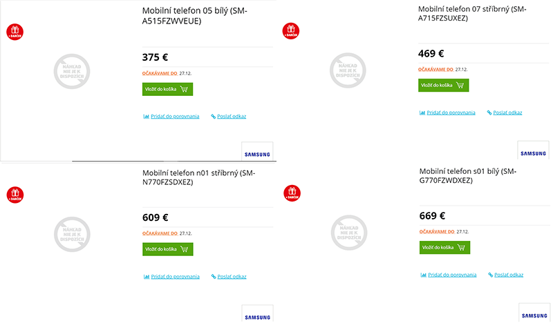 เว็บไซต์ GalaxyClub ได้เผยข้อมูลที่หลุดออกมาจากร้านค้าในสโลวาเกีย โดยทั้ง 4 รุ่นคาดการณ์ว่าจะวางจำหน่ายในช่วงวันที่ 27 ธันวาคมนี้ ในราคาดังนี้