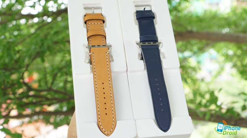 และสำหรับรุ่น Striped Leather Watch Band for Apple Watch for 42/44mm – (Light Tan/White) ตัวสายจะมีความบางกว่ารุ่น Leather Band for Apple Watch 42/44mm เล็กน้อย อีกจุดต่างที่เพิ่มความสวยงามให้กับรุ่นนี้คือจะมีสีขาวแทรกอยู่ตรงกลางสายเพิ่มความโดดเด่นและสวยงามอย่างมากให้กับรุ่นนี้ครับ