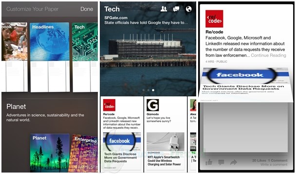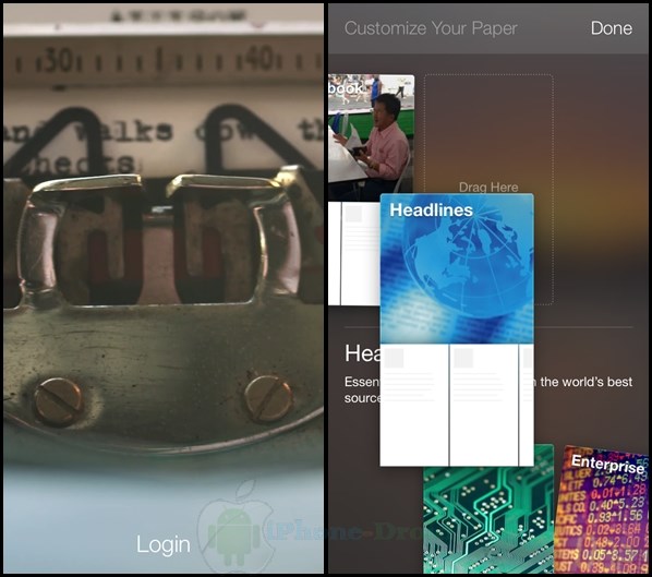 หลังจากที่ติดตั้งเรียบร้อยเข้ามาในแอพจะมีหน้าให้ล็อคอินนะครับเพื่อใช้งานร่วมกันกับบัญชีของ Fcebook ได้เลย หลังจากที่ล็อคอินแล้วเราสามารถเลือกหัวข้อข่าวต่าง ๆ ที่จะอ่านโดยการแตะและลากหัวข้อข่าวขึ้นไปด้านบนแบบในภาพครับ