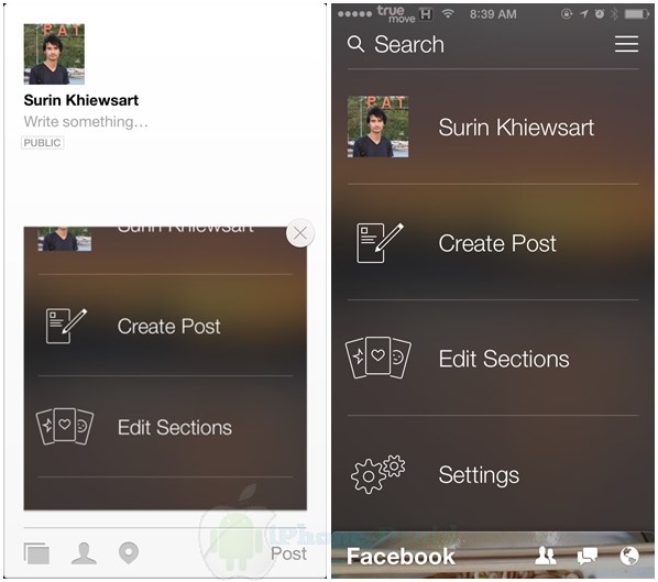 สามารถเขียนโพสต์ไปที่ Facebook จากแอพ Paper ได้ แตะไปที่ Public เพื่อตั้งค่าความเป็นส่วนตัวนะครับ