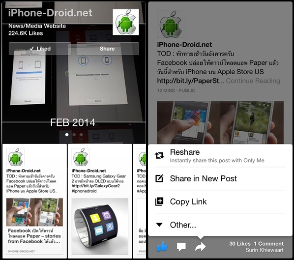 ตัวอย่างจากหน้าเพจ iphone-droid.net นะครับสามารถเข้าไปกด Like, Comment, Share ข่าวสารได้เช่นกันครับ