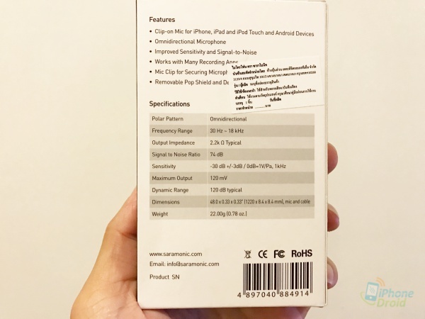 ตัวแรกจะเป็นไมค์แบบไร้สาย ซึ่งไม่ใช่ Wireless นะครับ แต่มันไม่มีสาย เสียบกับสมาร์ทโฟนโดยตรงได้เลย รุ่น SmartMic ราคา 900 บาท