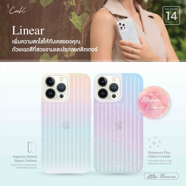 • รุ่น Linear เคสโปร่งแสง โดดเด่นด้วยการไล่เฉดสีพร้อมเพิ่มประกายความแวววาวสดใสให้กับเคสของคุณ ขอบเคสผลิตจากวัสดุ IML TPU ที่มีความยืดหยุ่นสูง ทนทาน พร้อมป้องกันรอยขีดข่วนได้เป็นอย่างดี มาพร้อมดีไซน์ที่บางเบาและปุ่มสัมผัสที่แม่นยำ COEHL by UNIQ รุ่น Linear มี 2 สี ได้แก่ สี STARDUST และ สี IRIDESCENT วางจำหน่ายในราคา 890 บาท