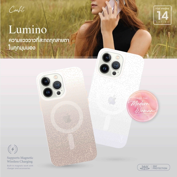 • รุ่น Lumino เคสใสที่เพิ่มลูกเล่นด้วยการไล่เฉดสีแบบ Ombre พร้อมสะกดทุกสายตาในทุกมุมมอง ด้านในมีวงแหวนแม่เหล็กช่วยรองรับการชาร์จไร้สายผ่านวงแหวนแม่เหล็ก สามารถยึดติดกับอุปกรณ์เสริมอื่นๆที่มีแม่เหล็กได้ ผลิตจากวัสดุ IML TPU COEHL by UNIQ รุ่น Lumino มี 2 สี ได้แก่ สี CHAMPAGNE GOLD และ สี SPARKLING SILVER วางจำหน่ายในราคา 1,190 บาท