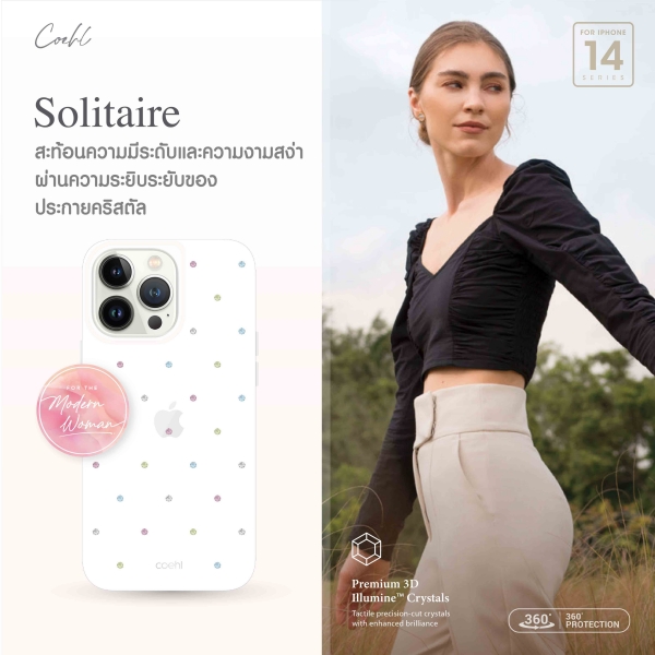• รุ่น Solitaire เคสใสที่สะท้อนความงามสง่าและความมีระดับผ่านความระยิบระยับของประกายคริสตัลที่ฝังอยู่ในตัวเคส ผลิตจากวัสดุ IML TPU COEHL by UNIQ รุ่น Solitaire มี 1 สี ได้แก่ สี CLEAR วางจำหน่ายในราคา 1,390 บาท