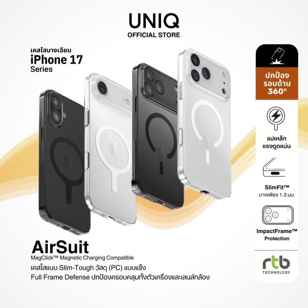 ภายใต้ปรัชญา “We make life better by design” UNIQ มุ่งมั่นสร้างสรรค์ผลิตภัณฑ์ที่ผสานดีไซน์อันโดดเด่นเข้ากับฟังก์ชันการใช้งาน เพื่อยกระดับประสบการณ์การใช้สมาร์ทโฟนในทุกวัน โดยพิสูจน์ความสำเร็จในไทยมากว่า 13 ปี ตั้งแต่ยุค iPhone 4 โดยเคสสำหรับ iPhone 17 ทุกรุ่นได้รับการออกแบบมาอย่างพิถีพิถัน เพื่อมอบการปกป้องรอบด้านแบบ 360 องศา และรองรับการชาร์จไร้สายผ่านวงแหวนแม่เหล็ก MagClick™ อันทรงพลัง