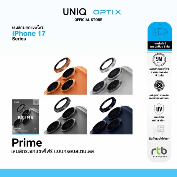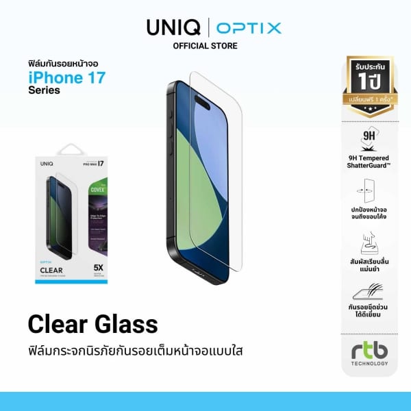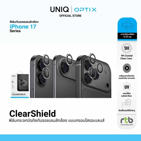 ผลิตภัณฑ์เคสกันกระแทก UNIQ และฟิล์มกันรอยหน้าจอและเลนส์กล้อง OPTIX สำหรับ iPhone 17 Series พร้อมวางจำหน่ายแล้ววันนี้ที่ร้านค้าในเครือ Com7 (Studio7, BaNANA, Bb Beyond D-Box), SPVi (iStudio by SPVi), Uficon (iStudio by Uficon), Power Mall, Apple House, Focus Store, iDEVICE, Advice, B2S และช่องทางออนไลน์ที่ https://rtbtechnology.org/m/uniq-thailand ติดตามโปรโมชั่นและข้อมูลสินค้าเพิ่มเติมได้ที่ https://www.facebook.com/uniqbyrtb