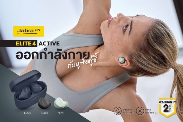 สำหรับคนรักเสียงเพลงคุณภาพที่ชอบการออกกำลังกาย สามารถหาซื้อและสัมผัสประสบการณ์ฟังเพลงสุดคมชัดจากสุดยอดนวัตกรรมหูฟังจาก “จาบร้า” (Jabra) รุ่น Jabra Elite 4 Active มีให้เลือกทั้งหมด 3 สี ได้แก่ BLACK , NAVY และ LIGHT MINT ได้แล้ววันนี้ที่ Studio7, Banana IT, BB Beyond D Box, iStudio by Copperwird , .life, iStudio by SPVi, Munkongadget, Powermall, Powerbuy, Betrend, Digital Lab Siam Discovery, Jaymart, Central Online, Chi Chang, Mercular, 425Degree, JIB Online, Lazada, Shopee, Gadgetthai หรือตัวแทนจำหน่ายทั่วประเทศหรือสามารถติดตามรายละเอียดเพิ่มเติมผ่านทาง https://www.facebook.com/jabrathailand
