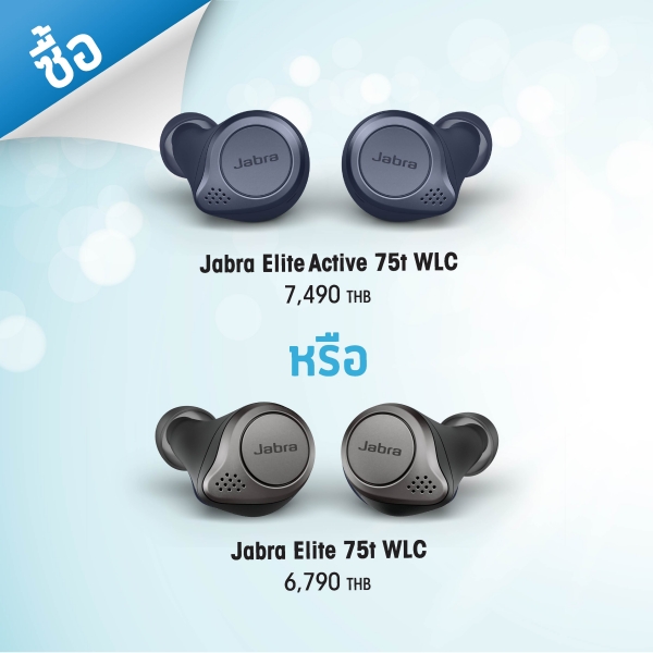 สำหรับ Jabra Elite 75t WLC เป็นหูฟังไร้สายแบบ True Wireless ที่มาพร้อมไมโครโฟนถึง 4 ตัว ซึ่งจะช่วยตัดเสียงรบกวนจากภายนอกขณะกำลังสนทนา เพื่อให้ได้ยินเสียงที่คมชัดในทุกสภาวะ ขณะเดียวกันยังมาพร้อมโหมด Hear-Through สำหรับควบคุมการรับเสียงจากภายนอกในระหว่างใช้งานหูฟัง เมื่อคุณต้องใช้งานบนท้องถนนหรือในที่สาธารณะระบบจะทำการลดความดังของเพลงลงอัตโนมัติ ทำให้คุณได้ยินเสียงจากสภาพแวดล้อมภายนอกผ่านเข้าไปในหูที่ชัดเจนขึ้น ทั้งนี้เพื่อความสะดวกในการสื่อสารกับคนรอบข้างและความปลอดภัยในขณะเดินทางได้เป็นอย่างดี ยิ่งไปกว่านั้นยังสามารถกันฝุ่นและละอองน้ำได้ในระดับ IP55 และยังรองรับการปรับแต่ง Equalizer ผ่านการทำงานร่วมกับแอพพลิเคชั่น Jabra Sound+ ซึ่งจะช่วยให้สามารถปรับแต่งเสียงเพลงได้อย่างอิสระ รวมไปถึงการอัพเดทเฟิร์มแวร์ที่สามารถทำให้หูฟังมีฟังก์ชันที่ดีขึ้น และฉลาดขึ้นอีกด้วย นอกจากนั้นยังรองรับการใช้งานด้วยเสียงอย่าง Amazon Alexa, Siri และ Google Assistant เพื่อเพิ่มความสะดวกในการใช้สมาร์ทฟังก์ชันต่างๆ มาพร้อมแบตเตอรี่ที่รองรับการใช้งานได้ยาวนาน 7.5 ชั่วโมง และชาร์จได้เพิ่มอีกรวมเป็น 28 ชั่วโมง อีกทั้งยังรองรับ Wireless Charge และการชาร์จเร็วด้วย USB-C ที่สามารถฟังเพลงต่อเนื่องได้นานถึง 60 นาที เมื่อชาร์จไฟเพียง 15 นาทีเท่านั้น โดยมีให้เลือก 1 สี ได้แก่ Titanium Black พร้อมวางจำหน่ายในราคา 6,790 บาท