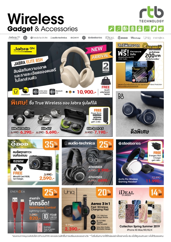 บริษัท อาร์ทีบี เทคโนโลยี จำกัด ผู้นำเข้าและจัดจำหน่ายสินค้า Gadget รายใหญ่ในประเทศไทย ยกขบวนหูฟัง สุดฮิตราคาพิเศษ จากแบรนด์ชื่อดัง มาจำหน่ายในงานมหกรรมโทรศัพท์มือถือ Thailand Mobile Expo 2019 พร้อมโปรโมชั่นแรง พร้อมของสมมนาคุณ นอกจากนี้ พบกับหูฟังระดับ Intelligence ที่ล่ารางวัลมาแล้วมากมาย รุ่นใหม่ล่าสุดจาก Jabra รุ่น Elite 85H มาพร้อมกับระบบ AI ยิ่งใช้งานยิ่งฉลาด เพราะสามารถปรับเสียงตามสภาพแวดล้อมได้โดยอัตโนมัติ