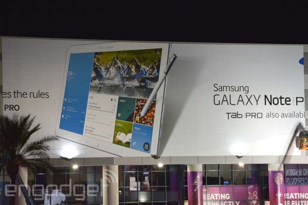 Samsung เริ่มขึ้นป้าย Galaxy Note Pro และ Galaxy Tab Pro ในงาน CES 2014 แล้ว คาดว่าเตรียมประกาศเปิดตัวอย่างเป็นทางการพรุ่งนี้ตามเวลาที่ลาสเวกัส
