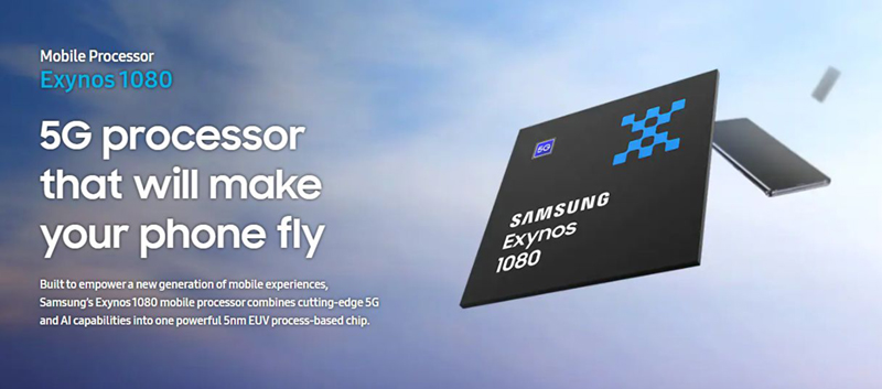 Exynos 1080 มาพร้อม CPU Octa-core ใช้ Cortex-A78 จำนวน 4 คอร์ ความเร็ว 2.8GHz และ Cortex-A55 อีก 4 คอร์ ความเร็ว 2.0GHz โดยมี GPU Mali-G78 MP10 รองรับเครือข่าย 5G ในตัวทั้งแบบ Sub-6GHz และ mmWave, Bluetooth 5.2 และ Wi-Fi ทุกแบนด์