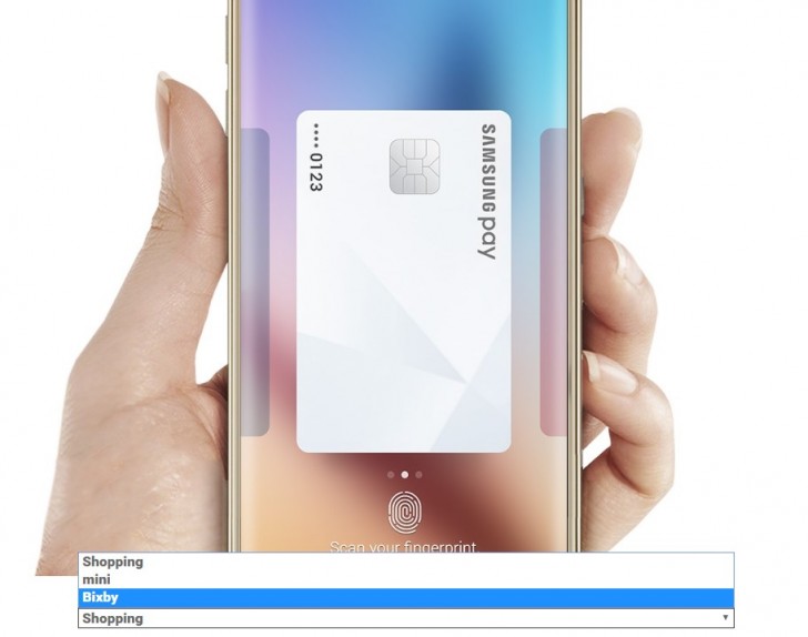 ชื่อของ Bixby แสดงอยู่ในหน้าเว็บเพจของบริการ Samsung Pay บนเว็บไซต์ทางการของ Samsung ประเทศเกาหลีใต้ (อัปเดทล่าสุด ชื่อดังกล่าวถูกถอดออกไปแล้ว) โดยจะอยู่ในรายการเมนูถัดจากชื่อ mini คาดกันว่าคือบริการ Samsung Pay mini สำหรับช้อปปิ้งออนไลน์ที่เคยมีข่าวว่าเป็นแอพพลิเคชั่นที่รองรับการทำงานบนสมาร์ทโฟน Android รุ่นอื่น และจะมีเวอร์ชั่น iOS ด้วย