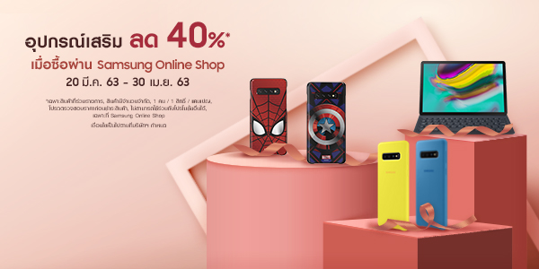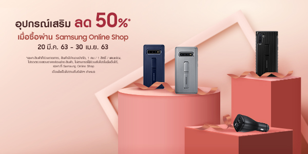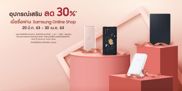 นำ point ที่มีใน Samsung pay ไปใช้เป็นส่วนลดอุปกรณ์เสริมของมือถือมากมายใน Samsung Samsung Official Store สูงสุดถึง 50% ไม่ว่าจะเป็น สายนาฬิกา, Wireless Power Bank เคสมือถือ และสายชาร์จ 45วัตต์ และ อื่น ๆ อีกมายมายใน Samsung online store อาทิ ใช้คะแนน Samsung Rewards 300 คะแนน รับ Voucher code ส่วนลด 30% เพื่อซื้อ Galaxy Buds+ ผ่านทางเว็บไซต์