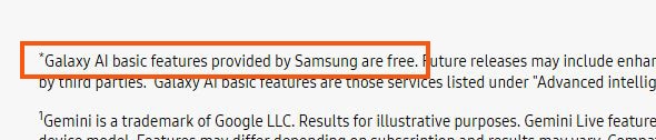 ตั้งแต่ที่มีการเปิดตัว Galaxy AI ใน Galaxy S24 Series ทาง Samsung บอกว่าฟีเจอร์เหล่านี้จะใช้งานได้ฟรีเฉพาะในช่วงเวลาจำกัดเท่านั้น ซึ่งข้อความเดิมระบุว่า Galaxy AI จะใช้งานได้ฟรี “จนถึงปี 2025” และกล่าวว่าผู้ใช้อาจต้องชำระเงินหลังจากนั้น ซึ่งด้วยเหตุผลนี้หลายคนคงกังวลว่าจะต้องเสียเงินต่อหลังจากนี้ แต่ตอนนี้ก็มีการอัปเดตข้อความหมายเหตุเอาไว้เรียบร้อยที่บอกว่าฟีเจอร์ AI พื้นฐานของ Galaxy ที่ Samsung ให้บริการนั้นจะใช้งานได้ฟรี ! นั่นหมายความว่าผู้ใช้งานสามารถใช้เครื่องมือเหล่านี้ต่อไปได้โดยไม่มีค่าใช้จ่ายใดๆ ในปี 2026 และในอนาคต