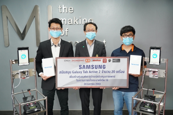 บริษัท ไทยซัมซุง อิเลคโทรนิคส์ จำกัด ร่วมสนับสนุนอุปกรณ์แท็บเล็ตรุ่น กาแลคซี่ แท็บ แอคทีฟ 2 (Galaxy Tab Active 2) ให้แก่โครงการพัฒนาหุ่นยนต์และอุปกรณ์สนับสนุนการแพทย์ “CU-RoboCOVID” ซึ่งดำเนินงานโดย คณะวิศวกรรมศาสตร์ จุฬาลงกรณ์มหาวิทยาลัย เพื่อช่วยลดความเสี่ยงในการติดเชื้อ แบ่งเบาภาระงาน และช่วยเพิ่มประสิทธิภาพการทำงานให้บุคลากรทางการแพทย์ในช่วงสถานการณ์การระบาดของโรคติดเชื้อไวรัสโคโรนา 2019