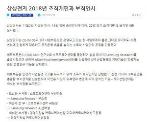 ซัมซุงออกแถลงการปรับโครงสร้างใหม่ของบริษัท และเตรียมเปิดศูนย์วิจัย เพื่อพัฒนาระบบปัญญาประดิษฐ์ หรือ AI (Artificial Intelligence) แห่งใหม่ของตัวเอง โดยศูนย์วิจัยนี้ สร้างขึ้นเพื่อพัฒนาระบบ AI สำหรับเทคโนโลยีในกลุ่มสมาร์ทโฟนและอุปกรณ์อิเล็คทรอนิกส์เพื่อผู้บริโภค และได้กล่าวถึงการปรับโครงสร้างของธุรกิจครั้งนี้ (เปลี่ยนทีมบริหาร) ว่าเพื่อตอบสนองต่อการเปลี่ยนแปลงของตลาดได้อย่างรวดเร็ว อย่างไรก็ตามในแถลงการณ์ไม่ได้ระบุว่าศูนย์วิจัย AI นี้จะตั้งอยู่ที่ใด