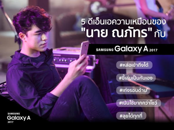 เปิดศักราชใหม่ปีไก่ทอง ซัมซุงประเดิมเปิดตัวสมาร์ทโฟนซีรี่ส์ล่าสุด “ซัมซุง กาแลคซี่ เอ 2017 (New Samsung Galaxy A 2017)” สมาร์ทโฟนที่เก่งรอบด้าน ความสามารถล้นเหลือ เตรียมปูพรมด้วยกลยุทธ์การสื่อสารการตลาดแบบจัดหนักอีกครั้ง คว้าตัว “นาย – ณภัทร เสียงสมบุญ” ดาวรุ่งแห่งยุคถ่ายทอดดีเอ็นเอของสมาร์ทโฟนรุ่นใหม่นี้ ด้วยแนวคิดการสื่อสารที่แตกต่างน่าสนใจ