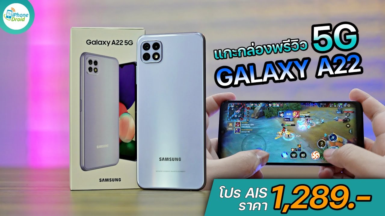 แกะกล่องพรีวิว Samsung Galaxy A22 5G มาพร้อมหน้าจอ Infinity-V ขนาด 6.6 นิ้ว ความละเอียด FHD+ พร้อม Refresh Rate 90Hz ทดสอบเล่นเกม ROV และ PUBG Mobile ชิปเซ็ต MediaTek Dimensity 700 5G จะรอดหรือไม่ ไปดูคลิปพรีวิวนี้ได้เลย