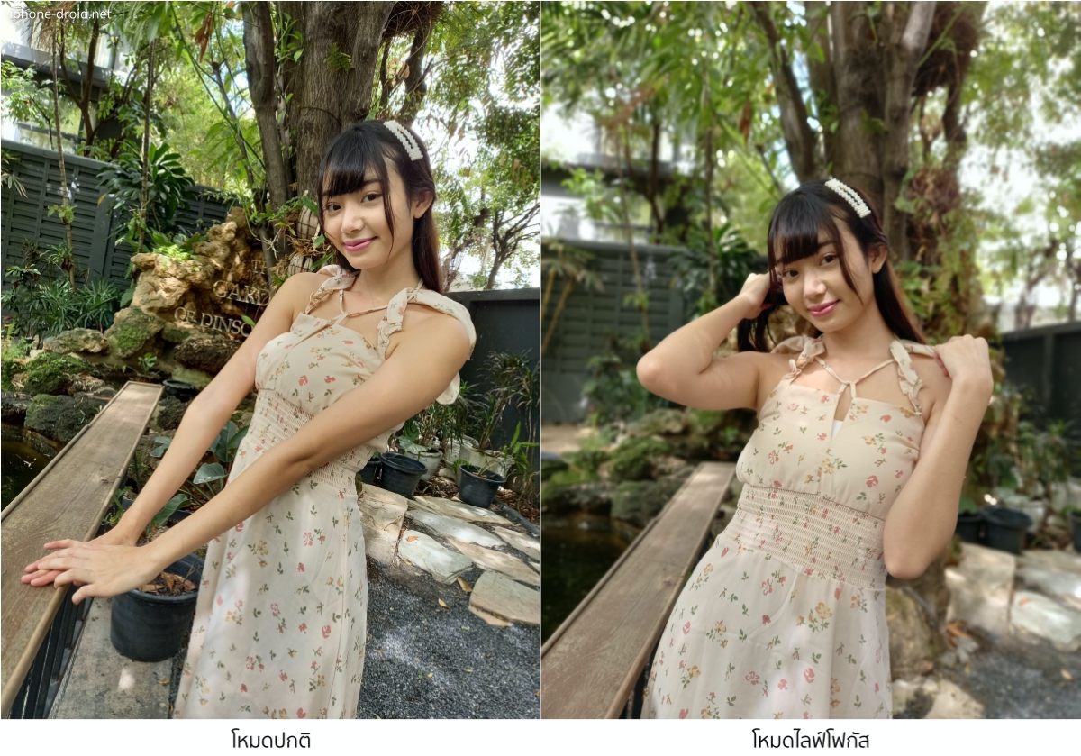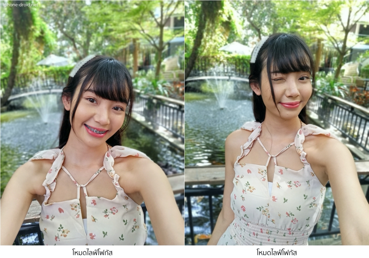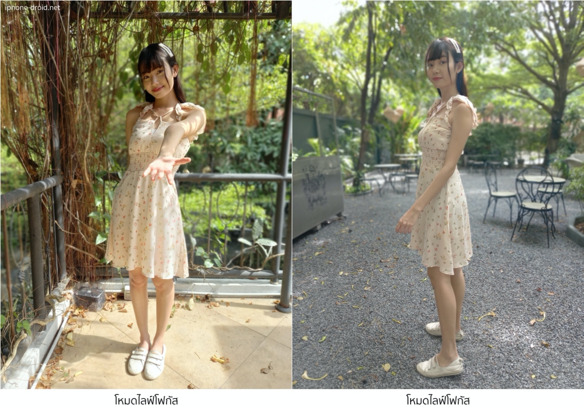 อีกหนึ่งโหมดที่เเป็นการใช้ความสามารถของกล้อง Depth และกล้องหลักทำงานร่วมกัน คือการถ่ายภาพแบบหน้าชัดหลังละลายของโหมดไลฟ์โฟกัส เพื่อช่วยให้การตัดขอบตัวคนเพื่อละลายฉากหลังทำได้เนียนเป็นธรรมชาติมากขึ้น