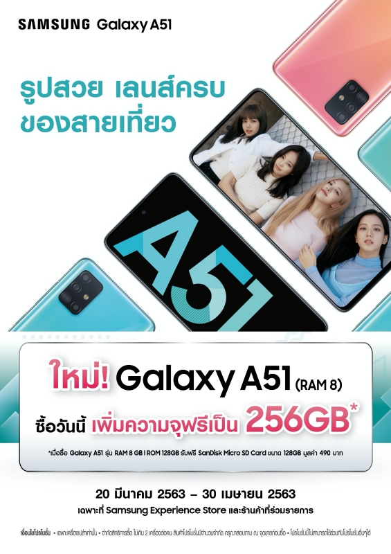 ติดตามรายละเอียดเพิ่มเติมได้ที่ www.samsung.com/th/smartphones/galaxy-a51