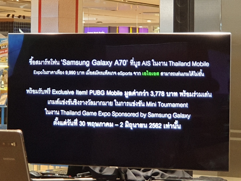 ครั้งแรกในหน้าประวัติศาสตร์กีฬาอีสปอร์ตที่ บริษัท ไทยซัมซุง อิเลคทรอนิคส์ จำกัด ได้ตอกย้ำความเป็นผู้นำสมาร์ทโฟนสเปคเทพสำหรับเกมเมอร์ในประเทศไทย โดยจับมือกับ บริษัท แอดวานซ์ อินโฟร์ เซอร์วิส จำกัด (มหาชน) หรือ เอไอเอส ผู้นำนวัตกรรมเครือข่ายและบริการดิจิทัล รุกสร้างปรากฏการณ์ความตื่นเต้นใหม่แก่คอเกมด้วยการจัดกิจกรรม “AIS x Samsung Galaxy A70 eSports” ผ่านสมาร์ทโฟนเพื่อสุดยอดประสบการณ์เกมมิ่ง ‘กาแลคซี่ เอ 70’ พร้อมโปรโมชั่นสุดพิเศษ เมื่อซื้อ กาแลคซี่ เอ 70 ที่ซัมซุงแบรนด์ชอป และร้านค้าทั่วประเทศ รับฟรี!Belt Bag Galaxy A x RUKKIT (Limited Edition) มูลค่า 1,290 พร้อมรับฟรีประกันจอแตกนาน 1 ปี เมื่อลงทะเบียนผ่าน Galaxy Gift และผ่อน 0% นาน 10 เดือนผ่านบัตรเครดิตที่ร่วมรายการ ถึงวันที่ 31 พฤษภาคม 2562 เท่านั้น เพื่อเปิดโอกาสให้เกมเมอร์ไทยได้โชว์ศักยภาพบนบนแพลตฟอร์มที่ดีที่สุด เสริมสร้างโอกาสและศักยภาพแก่นักกีฬาอีสปอร์ตและเหล่าเกมเมอร์ชาวไทยให้สามารถแสดงทักษะและความสามารถอย่างไร้ขีดจำกัด