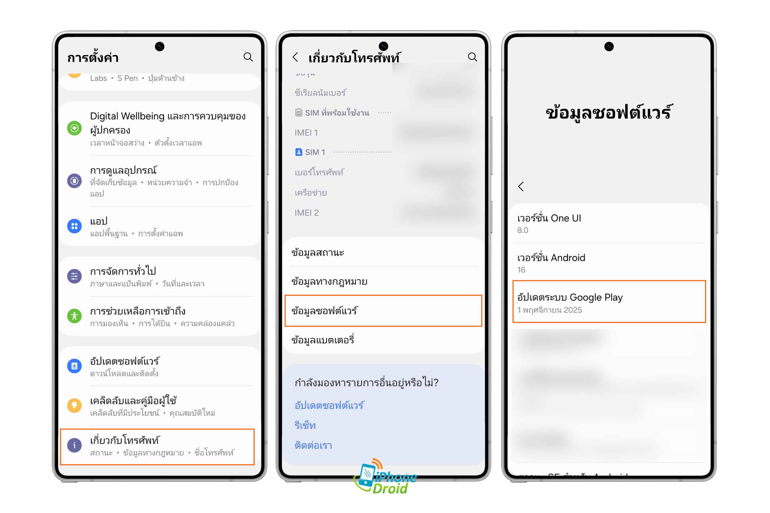 สำหรับการอัปเดตก็สามารถเข้าไปได้ที่ การตั้งค่า > เกี่ยวกับโทรศัพท์ > ข้อมูลซอฟต์แวร์ > กด อัปเดตระบบ Google Play