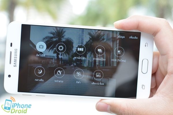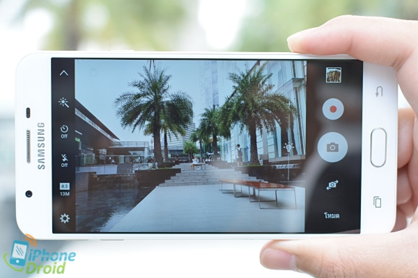 - กล้องหลังของ Galaxy J7 Prime ขนาดความละเอียด 13 ล้านพิกเซล ที่มีค่ารูรับแสง f/1.9 สามารถถ่ายภาพออกมาได้ดีทั้งความสว่างและรายละเอียดของภาพ สำหรับสมาร์ทโฟนระดับราคาไม่เกินหมื่นบาท โดยในส่วนของการชัตเตอร์เพื่อถ่ายภาพนิ่งอาจจะมีการดึงโฟกัสบ้าง