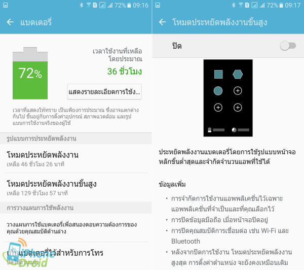 โหมดประหยัดพลังงานขั้นสูงจะใช้รูปแบบหน้าจอหลักขั้นต่ำสุด แต่ก็ยังแสดงผลเป็นหน้าจอแบบสี และจำกัดจำนวนแอพที่ใช้ได้ ระบบจะปิดการใช้งาน Wi-Fi และ Bluetooth ซึ่งหากหน้าจอดับก็จะปิดการเชื่อมต่อข้อมูลมือถือ เพื่อให้ใช้พลังงานน้อยที่สุด