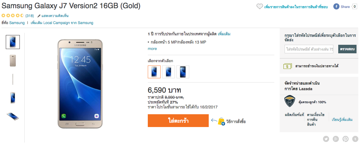 จิ้มไปดูได้ที่ www.lazada.co.th/samsung-galaxy-j7-version2-16gb-gold-6791419.html