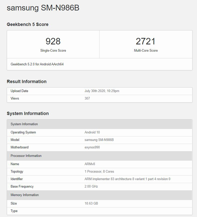 น่าจะเป็นข่าวที่ไม่น่าฟังเท่าไหร่สำหรับชิป Exynos 990 ที่จะใช้ใน Samsung Galaxy Note 20 Series ล่าสุด มีผล Benchmark จาก Geekbench ออกมาให้ชมกันครับ ซึ่งไม่ได้แตกต่างจากที่ใช้ใน S20 Series