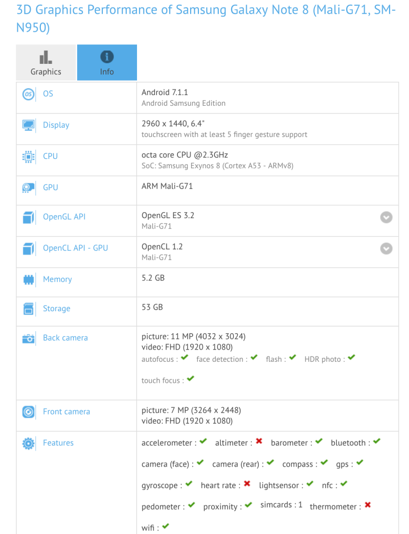 หลุดสเปคมาแล้วสำหรับ Galaxy Note 8 สมาร์ทโฟนรุ่นใหม่จาก Samsung บนฐานข้อมูลของ GFXBench เตรียมจะเผยโฉมอย่างเป็นทางการในวันที่ 23 สิงหาคมนี้