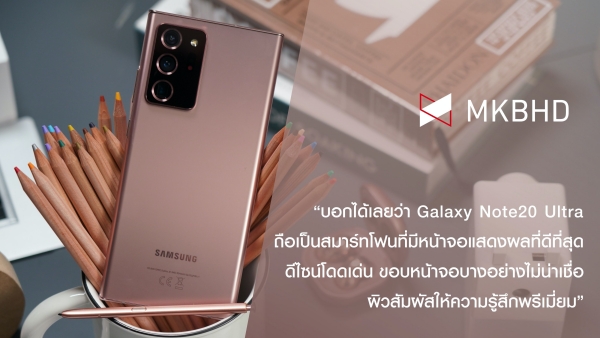 “แม้จะได้ทดลองใช้เป็นเวลาไม่นาน แต่บอกได้เลยว่า Galaxy Note20 Ultra ถือเป็นสมาร์ทโฟนที่มีหน้าจอแสดงผลที่ดีที่สุดรุ่นหนึ่งเลยทีเดียว รวมถึงความโดดเด่นทั้งดีไซน์ทรงเหลี่ยม ขอบหน้าจอที่บางอย่างไม่น่าเชื่อ และผิวสัมผัสแบบซาตินที่ให้ความรู้สึกพรีเมียมอย่างถึงที่สุด” จาก MKBHD