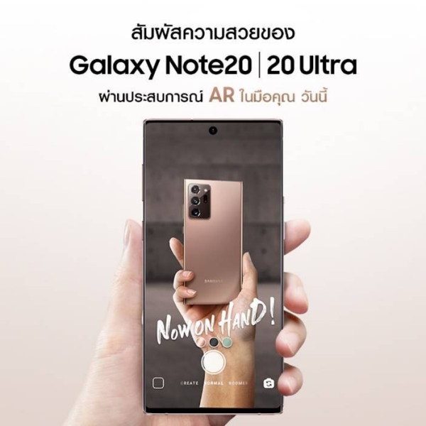 ซัมซุง ชวนร่วมเปิดประสบการณ์การสัมผัสความสวยของซัมซุง Galaxy Note20 series ในรูปแบบใหม่รองรับเทรนด์ Touchless Society ผ่านกิจกรรม The Exclusive Touch with AR Experience ครั้งแรกกับการนำเทคโนโลยี AR สุดล้ำสมัยมาให้คนไทยได้ทดลองใช้ผ่านทั้งช่องทาง Facebook และ Instagram ได้แล้วตั้งแต่วันนี้