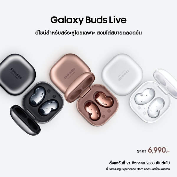 Galaxy Buds Live หูฟังไร้สายรุ่นใหม่ ในรูปทรงสุดไอคอนิกที่ออกแบบให้โค้งรับสรีระหูโดยเฉพาะ