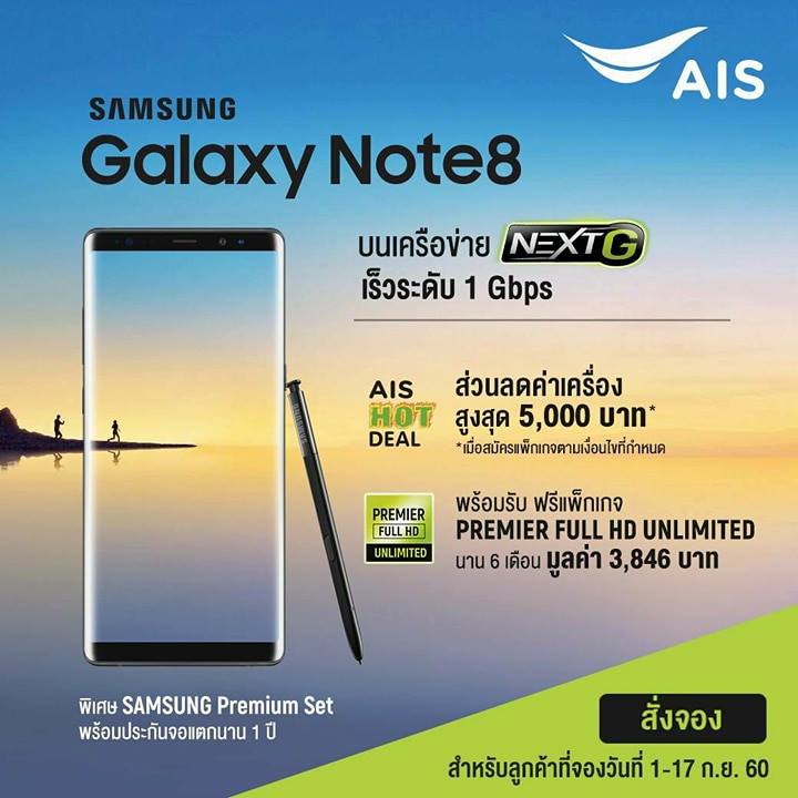 • รายละเอียดและจองได้ที่ www.ais.co.th/samsungnote8/preorder.html