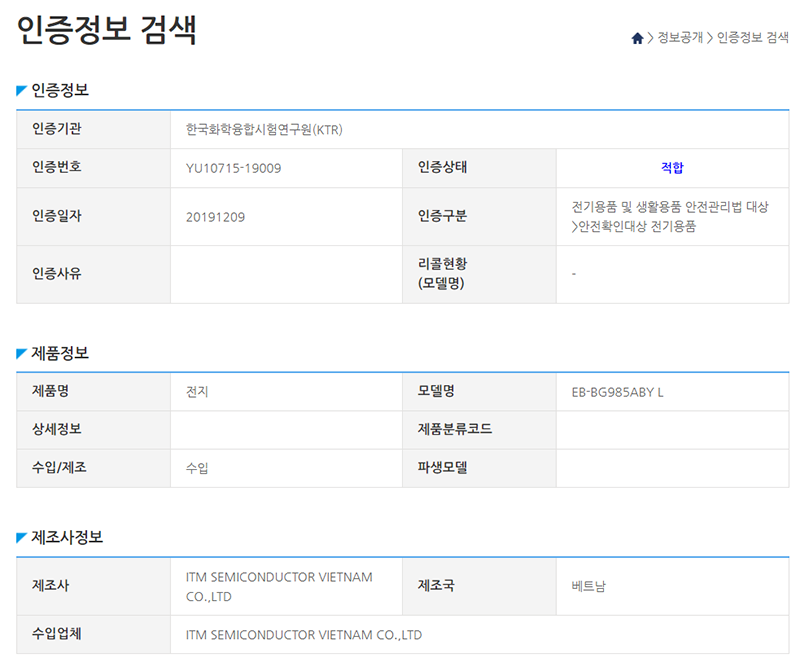 ข้อมูลการรับรองจาก SafetyKorea เผยว่า Galaxy S11 จะมีแบตเตอรี่ความจุ 4500mAh ในโมเดลแบตเตอรี่ EB-BG985ABY โดยภาพของตัวแบตที่หลุดแบบเบลอๆ ออกอาจพอมองออกได้ที่ความจุ 17.37 Wh ซึ่งเป็นกำลังไฟ 3.86V ทำให้ทราบได้อย่างชัดเจนครับ