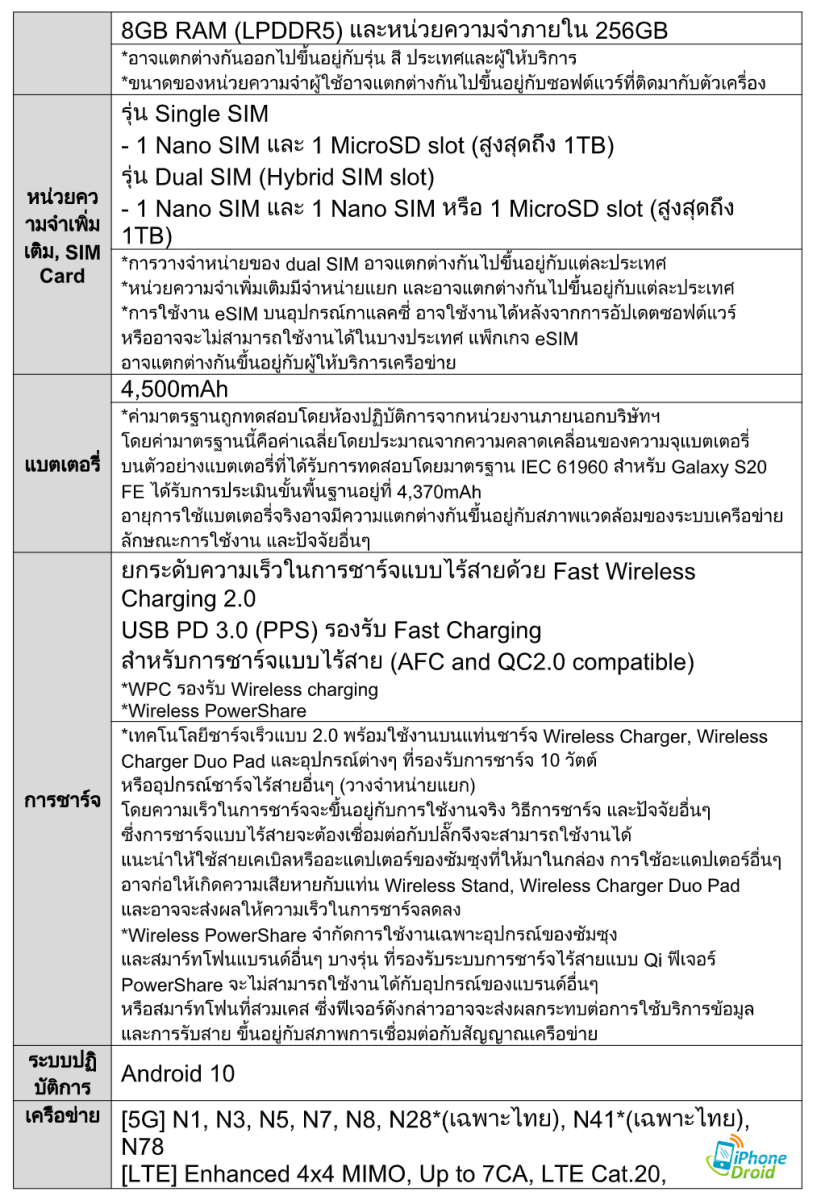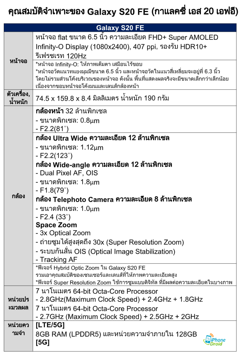 มารวมอยู่ในซัมซุง Galaxy S20 FE
