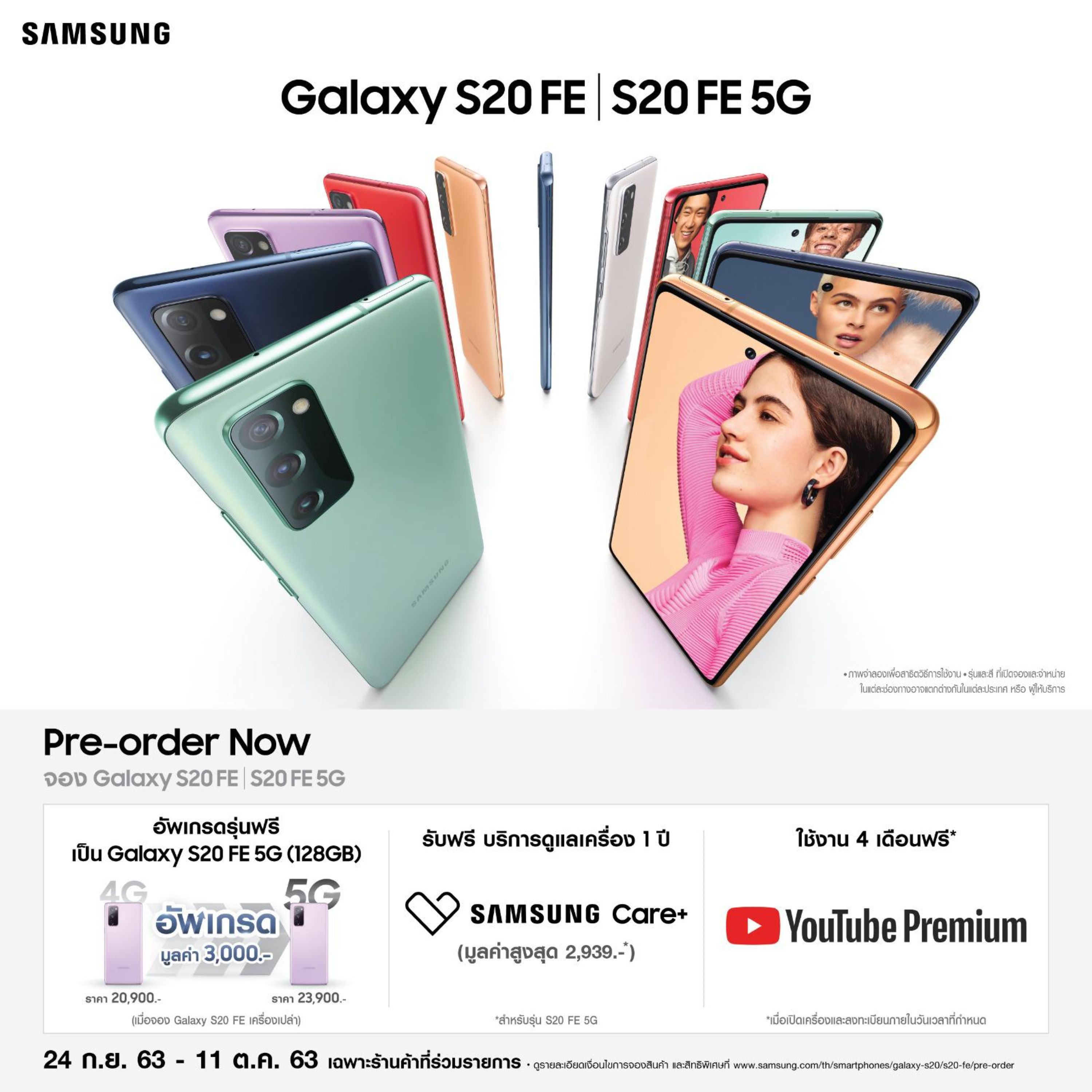 เริ่มด้วยของ Samsung มีให้เลือกทั้งหมด 6 สี ได้แก่ Cloud Navy, Cloud Lavender, Cloud Mint, Cloud Red, Cloud Orange และ Cloud White เมื่อสั่งซื้อ Galaxy S20 FE จะได้รับส่วนลด 3,000 บาททันที สำหรับ Galaxy S20 FE รุ่น 256GB 5G และหากใครที่ซื้อ Galaxy S20 FE รุ่น 4G LTE จะได้อัปเกรดเป็นรุ่น 5G ฟรี! โดยสามารถสั่งซื้อได้ตั้งแต่ 24 กันยายน – 11 ตุลาคม 2563 ที่ Samsung Experience Store หรือร้านค้าที่ร่วมรายการ
