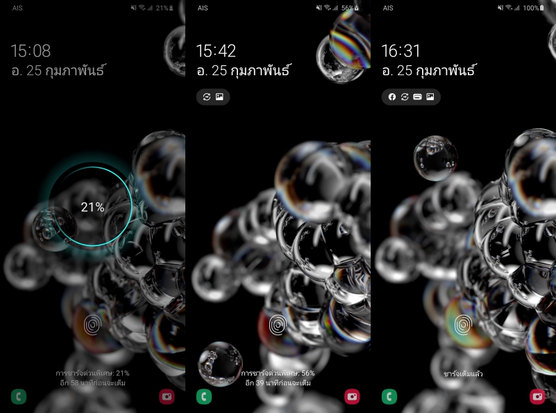 โดยเราได้ทดสอบเทคโนโลยี Fast Charge ด้วยอะแดปเตอร์ 25W กับรุ่น Galaxy S20 Ultra ปรากฏว่าการชาร์จถือว่าเร็วพอสมควรครับ เราชาร์จตอนแบตเตอรี่ 21% ใช้เวลาประมาณ 30 นาทีชาร์จถึง 56% และชาร์จเต็ม 100% ในเวลาตั้งแต่เริ่มชาร์จประมาณ 1 ชม. 20 นาที (อะแดปเตอร์ 45W เร็วกว่านี้แน่นอนครับ)