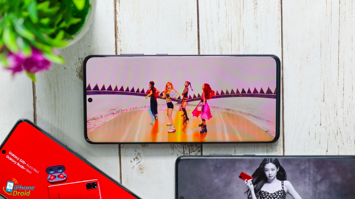 - หน้าจอแสดงผล Infinity-O ชนิด Dynamic AMOLED 2X กว้าง 6.2 นิ้ว (S20) / 6.7 นิ้ว (S20+) ความละเอียด Quad HD+ (3200 x 1440 พิกเซล) Refresh Rate 120Hz และรองรับ HDR10+