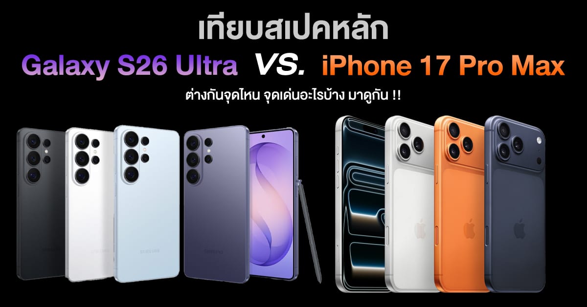เราได้ลองเทียบสเปคของ Samsung Galaxy S26 Series และ Galaxy S25 Series ไปแล้ว รอบนี้มาลองเทียบตัวท็อปอย่าง Galaxy S26 Ultra และ iPhone 17 Pro Max กันบ้างครับ โดยจะมีจุดเด่นหรือสเปคที่ต่างกันยังไงบ้าง เราได้สรุปมาแล้วครับ