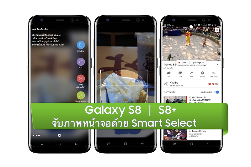 ก่อนอื่นมาทำความรู้จักหรือทบทวนเกี่ยวกับ Smart Select หรือการเลือกอัจฉริยะ กันก่อน เป็นฟีเจอร์สำหรับการเลือกพื้นที่บนหน้าจอได้แบบสี่เหลี่ยม หรือวงกลม ซึ่งจริงๆ แล้วฟีเจอร์นี้เรามักจะได้เห็นอยู่ใน Galaxy Note หรือแท็บเล็ตที่มีปากกา S Pen แต่ตอนนี้มาอยู่บน Samsung Galaxy S8 และ S8+ แล้ว โดยในฟีเจอร์นี้จะมีฟังก์ชั่น “ภาพเคลื่อนไหว” สำหรับเลือกพื้นที่วิดีโอที่กำลังเล่นบนหน้าจอแล้วทำการบันทึกเป็นระยะเวลาสั้นๆ เพื่อทำเป็นภาพเคลื่อนไหว (GIF) ได้ทันทีอีกด้วย