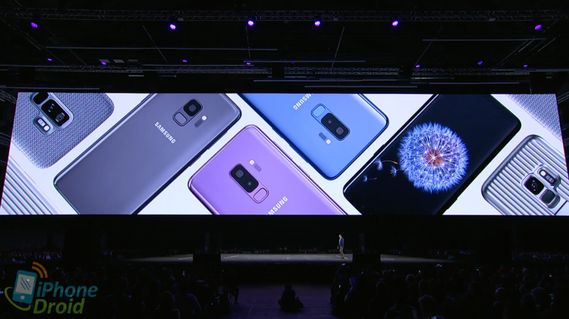 Samsung Galaxy S9 และ S9+ มี 4 สี ได้แก่ (Midnight Black), สีเทาไทเทเนียม (Titanium Gray), สีฟ้า (Coral Blue) และสีใหม่ สีม่วง (Lilac Purple)