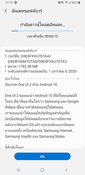 หลังจากที่ Samsung ปล่อยอัปเดทระบบปฏิบัติการ Android 10 ให้กับ Galaxy S9 Series ต่างประเทศไปแล้ว ล่าสุด ก็มาถึงคิวของศูนย์ไทยกันบ้างครับ มาในเวอร์ชัน G965FXXU7DTAA (S9+) และ G960FXXU7DTAA (S9) พร้อมขนาดดาวน์โหลดประมาณ 1.8GB และได้รับแพทช์ความปลอดภัยประจำเดือนมกราคม 2020 ด้วย
