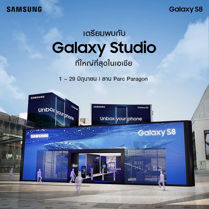 Samsung Galaxy สร้างปรากฎการณ์เปิด Galaxy Studio อย่างยิ่งใหญ่ใจกลางเมือง เพื่อให้ได้สัมผัส Samsung Galaxy S8 สมาร์ทโฟนไร้กรอบ ไร้ปุ่มโฮม พร้อมนวัตกรรมสุดล้ำจัดในรูปแบบของการผสานเทคโนโลยีกับไลฟ์สไตล์ ตั้งแต่วันที่ 1-29 มิถุนายนนี้ ที่ลานพาร์ค พารากอน เวลา 10.00น. – 21.00 น.