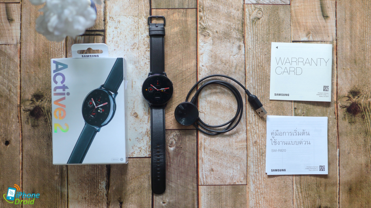 ตัวกล่องของ Samsung Galaxy Watch Active2 มีขนาดเล็กตามสไตล์ของ Smart Watch ครับ โดยภายในจะประกอบด้วยอุปกรณ์ต่างๆ ดังนี้