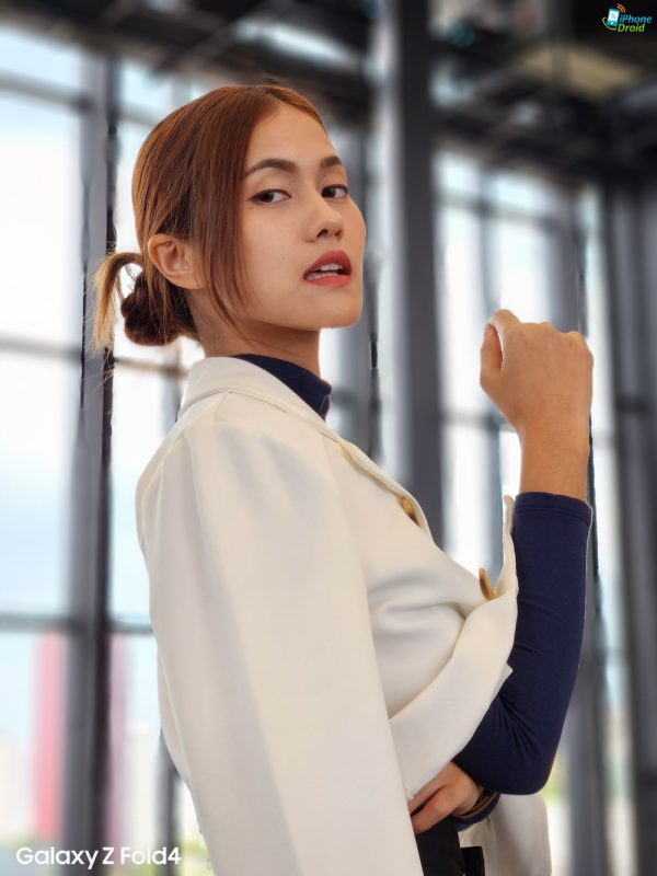 ในส่วนของโหมด Portrait เราสามารถใช้งานได้ 2 กล้องเป็น 2 ระยะคือ 1X หรือ 3X ซึ่งทำได้ดีทั้งคู่ ถ้าอยากได้เต็มตัวก็ใช้ 1X ได้เลย แต่ถ้าอยากได้แบบครอปเข้าไปเป็นระยะที่พอดีไม่กว้างจนเกินไปก็ใช้ 3X ได้ และที่สำคัญการเป็นสมาร์ทโฟนจอพับก็สามารถเปิดอีกหน้าจอให้แบบเราดูได้ด้วย หรือจะตั้งกล้องเองแล้วใช้ Gesture อย่าง Palm Selfie ให้ถ่ายเองก็จบ