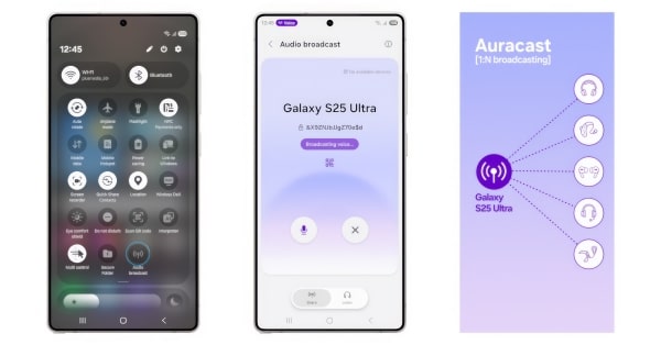 ฟีเจอร์ Cross-device ใหม่ ช่วยให้การจัดการอุปกรณ์ทำได้ง่ายขึ้น ไม่ว่าจะเป็นการจัดการไฟล์ แชร์อินเทอร์เน็ต หรือสื่อสารกับอุปกรณ์ใกล้ตัว ฟีเจอร์ Audio Broadcast3 ช่วยให้ส่งเสียงไปยังอุปกรณ์ที่รองรับ LE Audio รอบตัวได้อย่างสะดวกผ่าน Auracast และนอกจากเสียงจากวิดีโอหรือเพลงแล้ว ผู้ใช้ยังสามารถกระจายเสียงพูดจากไมโครโฟนของสมาร์ทโฟน Galaxy ได้ด้วย เหมาะสำหรับใช้ในทัวร์หรือกิจกรรมที่ต้องสื่อสารเป็นกลุ่ม