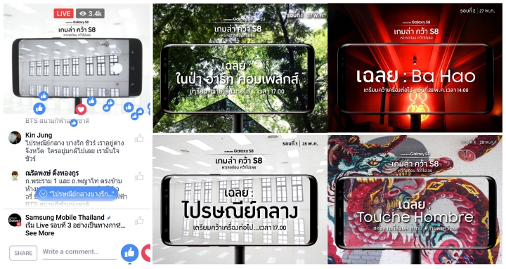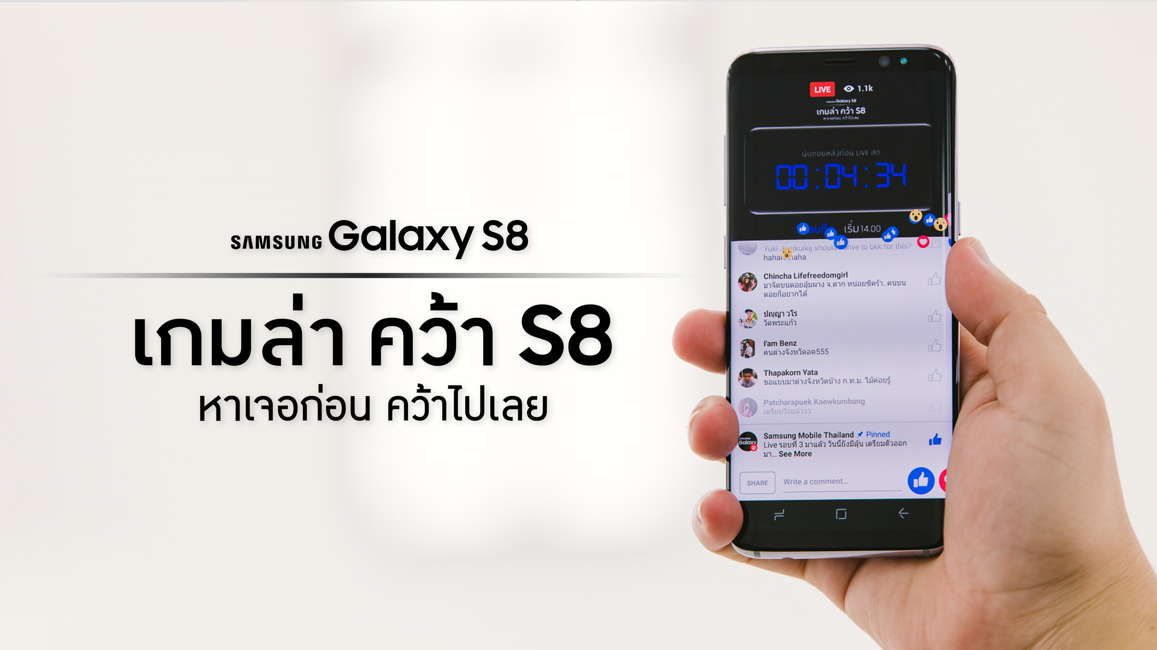 เรียกว่าเป็นปรากฏการณ์ไร้กรอบจริงๆสำหรับซัมซุงที่ออกแคมเปญ #เกมล่าคว้าS8 ท้าคนไทยให้ออกตามหา Samsung Galaxy S8 สมาร์ทโฟนไร้กรอบ ไร้ปุ่มโฮม ที่ซ่อนอยู่ตามจุดต่างๆทั่วกรุงเทพมหานคร ผ่าน Facebook Live ของ Samsung Mobile Thailand ที่ Hybrid โลกของ On-Ground และ On-Line ไปพร้อมๆกัน เอาใจ New Gen ที่ชอบความท้าทายรูปแบบใหม่ๆ